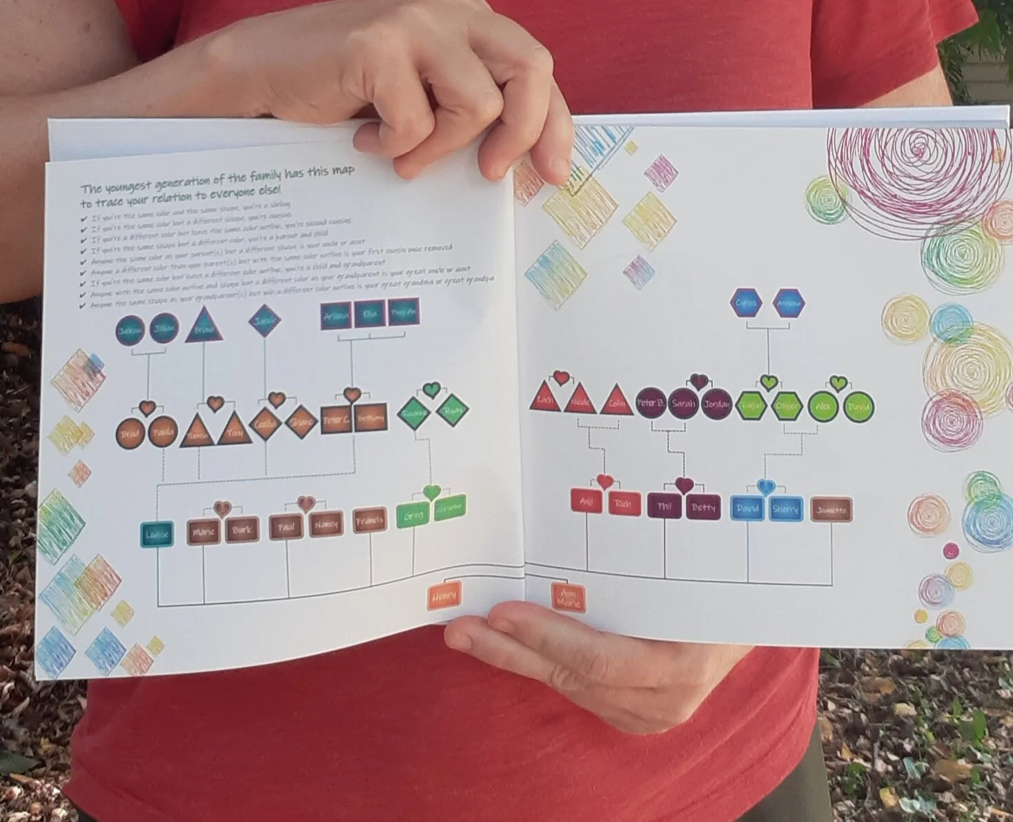 Our You & Me example includes a tree of those in the book. The chart shows how each person relates to the other.